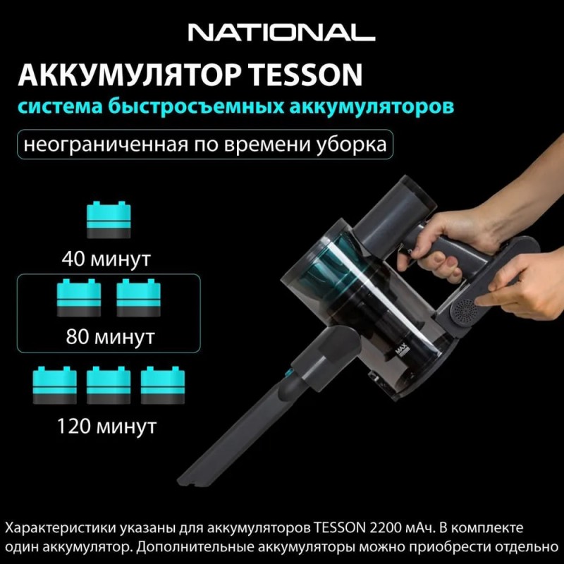 Мощный и удобный беспроводной вертикальный пылесос с подсветкой 2 в 1 National NH-VS1415 — идеально подойдет для домашнего использования.